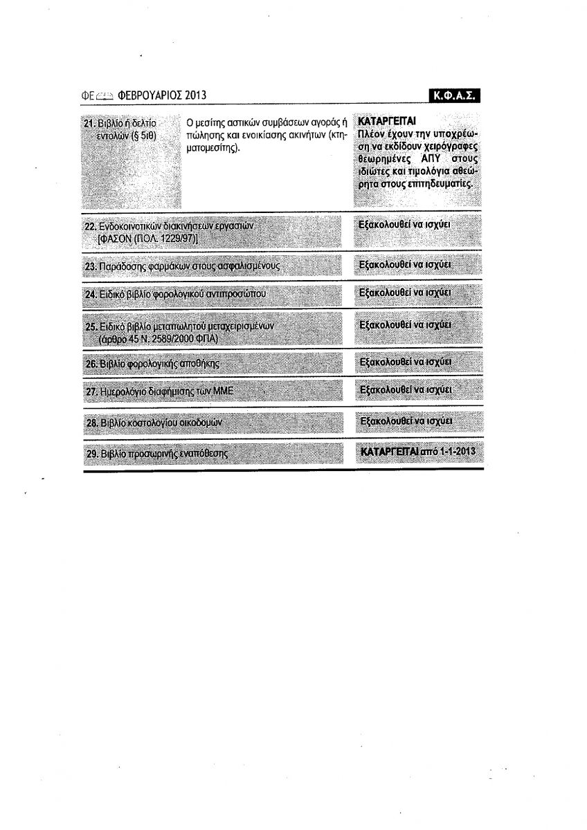 Έναν πλήρη οδηγό, για τα πρόσθετα βιβλία που καταργούνται και για αυτά που διατηρούνται, με τον νέο Κώδικα Φορολογικής Απεικόνισης Συναλλαγών, δημοσιεύουν σήμερα τα forologikanea.gr. Δείτε τους αναλυτικούς πίνακες όπως δημοσιεύτηκαν στο περιοδικό "Φορολογική Επιθεώρηση", τεύχος Φεβρουαρίου 2013.